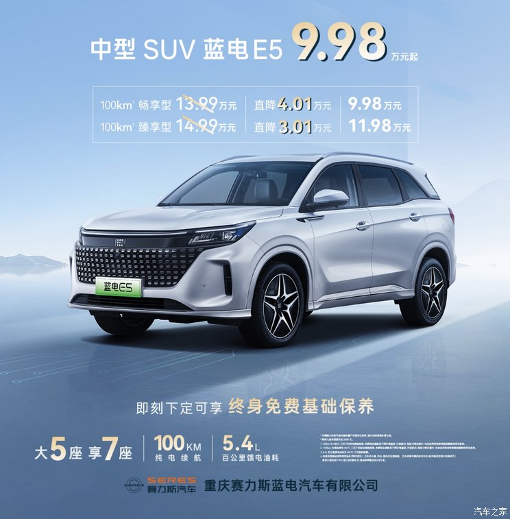 [本站 资讯] 3月5日,赛力斯蓝电官方宣布,旗下中型SUV蓝电E5开启限时优惠。即日起至6月30日…