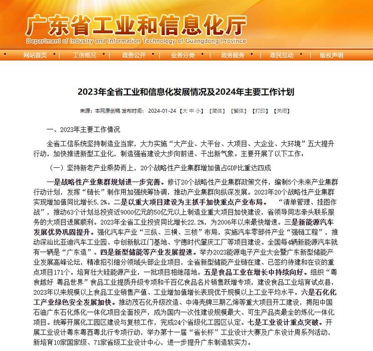 [本站 资讯] 1月24日,广东省工业和信息化厅发布2023年全省工业和信息化发展情况及2024年主…