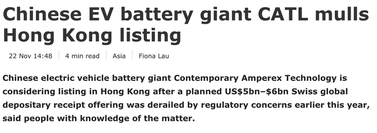 [本站 资讯]日前,据路透社旗下媒体IFR透露,宁德时代考虑在香港上市,最早可能于明年上市。据悉,宁…