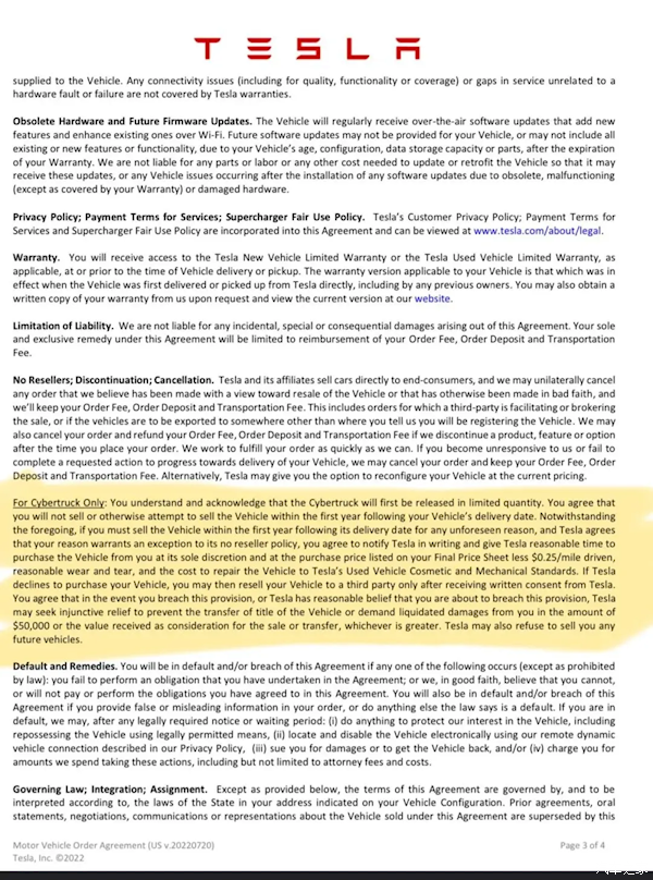 [本站 资讯] 日前,据媒体报道,特斯拉公布了最新的订购协议。据悉,在最新的订购协议当中,特斯拉表…