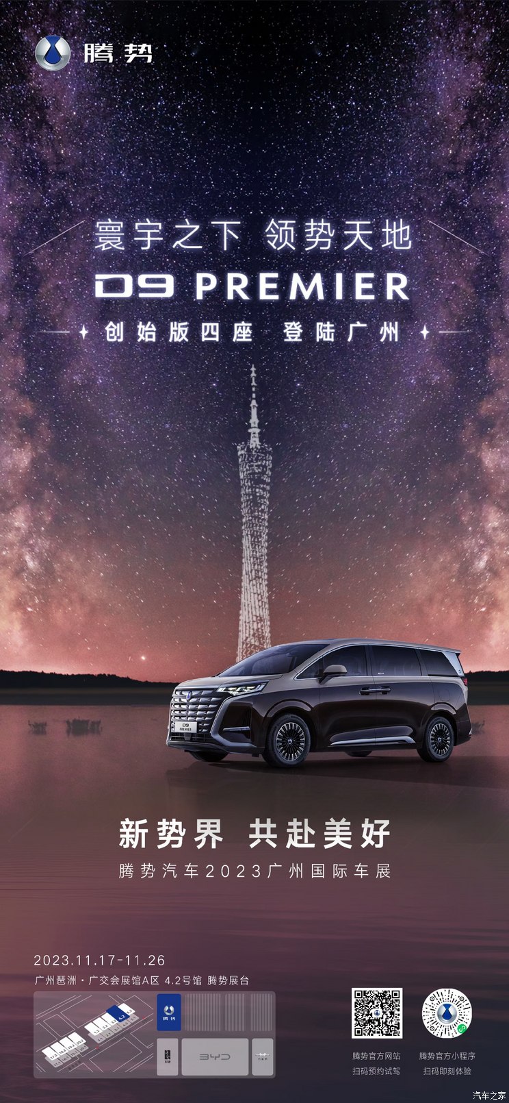 [本站 资讯]日前,我们从腾势官方获悉,腾势D9(参数|询价|全景看车) PREMIER 创始版四座…