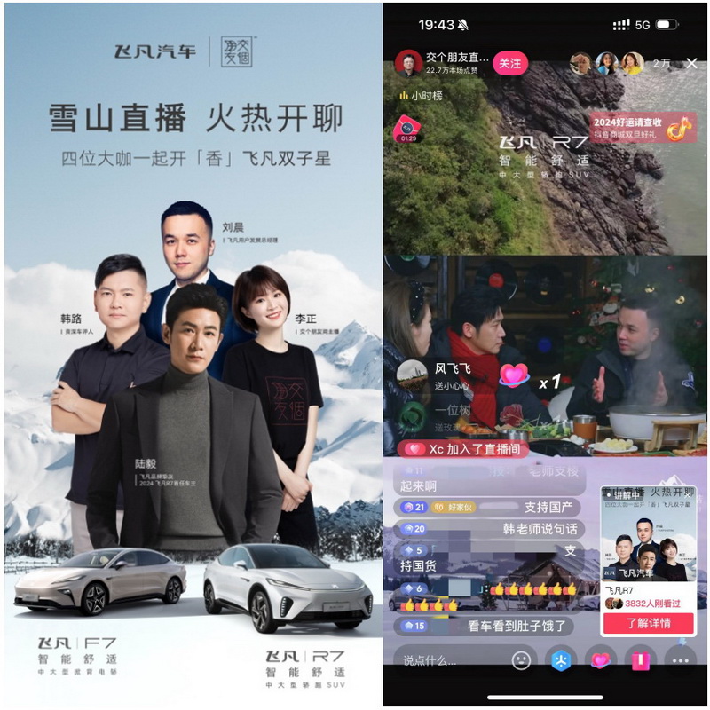 2023年12月20日,飞凡汽车X陆毅X交个朋友直播间三方梦幻联动,开启雪山火锅直播首秀。飞凡汽车用户发展总经…