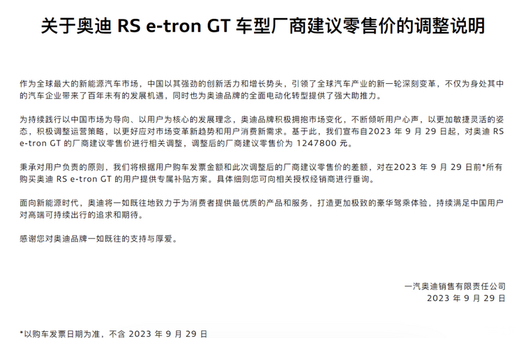 [本站 车型调价] 日前,我们从官方获悉,奥迪RS e-tron GT车型进行售价调整,售价为12…