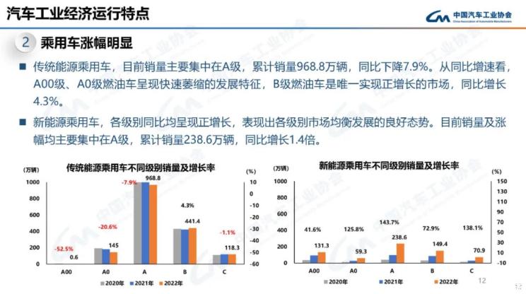 [本站 资讯] 日前,中汽协正式发布了2022年度产销数据,从全年发展来看,2022年汽车产销分别完成2702.1万辆和2686.4万辆,同比增长3.4%和2.1%,延续了去年的增长态势。2022年新能源汽车持续爆发式增长,全年销量超680万辆,市场占有率提升至25.6%,逐步进入全面市场化拓展期,迎来新的发展和增长阶段。同时,中汽协还预计,2023年汽车市场将继续呈现稳中向好发展态势,呈现3%左右增长。