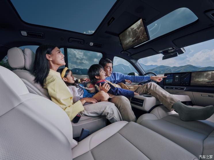 内饰方面,除了已经常见的中控台大液晶屏之外,新车型在左右门板以及后排都设计了LED屏幕,形成一种环抱贯穿式“银河环幕” 。通过一触即达的“信息闪送”交互模式,提供更顺畅、更自然、更安全的交互体验。前排可以推送车载信息至后排同享,相互之间也可独享娱乐互不打扰。后排还能为前排驾驶者提供驾驶信息辅助,例如导航、目的地发送等,为驾驶员的行车安全带去多一份保障。