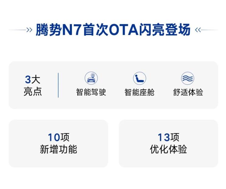 近日,腾势N7迎来首次OTA升级。此次升级主要针对智能驾驶、智能座舱、舒适体验三大方面新增10项功能以及13项体验优化。为用户在智能、安全、舒适等方面带来更为丰富的用车体验。具体信息如下: