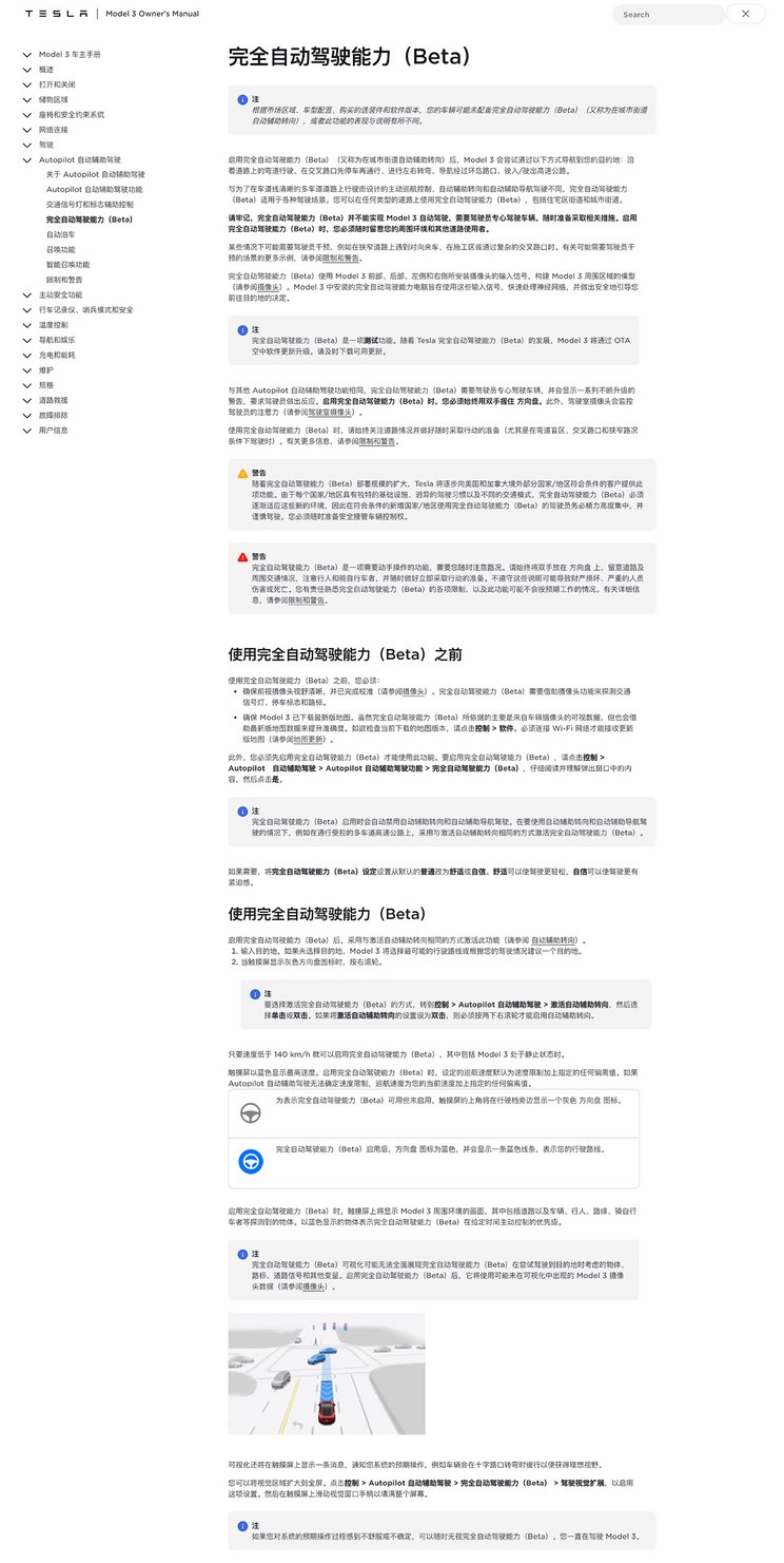 [本站 资讯]日前,特斯拉中国官网在中国车主手册上更新加入了FSD Beta相关内容,预示着FSD即将落地中国。以新款特斯拉Model 3为例,选装FSD需花费6.4万元,选装后可实现识别交通信号灯和停车标志并做出反应、在城市街道中自动辅助驾驶等功能。