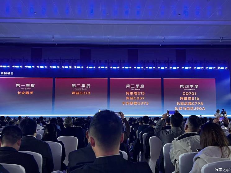 一季度,全球首款增程皮卡――长安猎手将开启交付;二季度,深蓝硬派SUV G318将正式上市;三季度,阿维塔旗下第二款SUV E15、深蓝C857、长安凯程G393将与大家见面;四季度,可变形的数智新汽车CD701、阿维塔中型轿跑E16、长安启源C798将加入产品阵营。