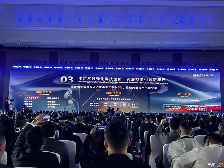 一是坚定不移以战略为牵引,实现转型升级新跃迁。坚定不移推进第三次创业――创新创业计划,快速落地新能源“香格里拉”、智能化“北斗天枢”,全球化“海纳百川”三大计划,大力推进“新汽车 新生态”战略,到2030年累计投入2000亿元,新增1万余人的科技创新团队,推出SDA重磅产品――CD701,与全球合作伙伴携手,成为新汽车科技产品与服务的提供商,共同打造共享、共建、共赢的科技生态,成为“数智新汽车”时代引领者!