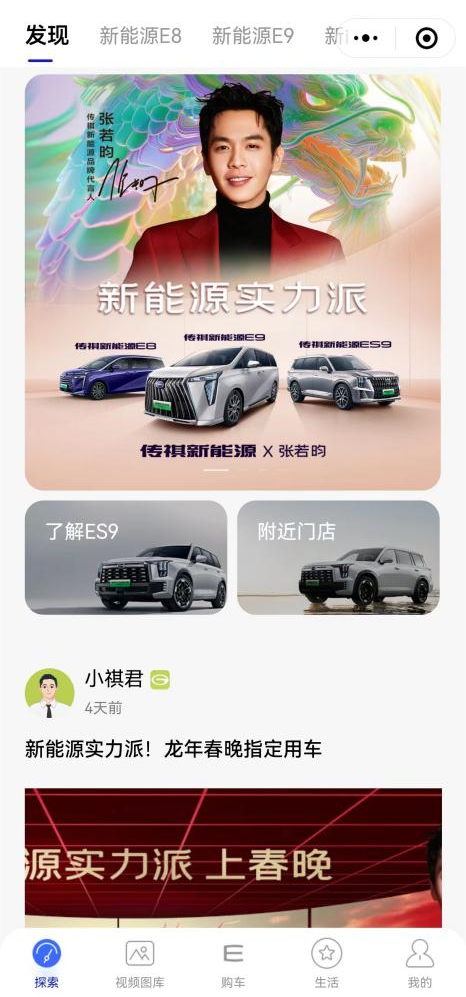 此次央视春晚,传祺新能源携品牌代言人——中国新生代实力派演员张若昀,向全球华人拜年,全球亿万华人共同见证这一温馨时刻。2月2日,传祺新能源品牌正式官宣代言人张若昀,这场“新能源实力派”与“明星实力派”的双向奔赴,必将好戏连连,值得期待。