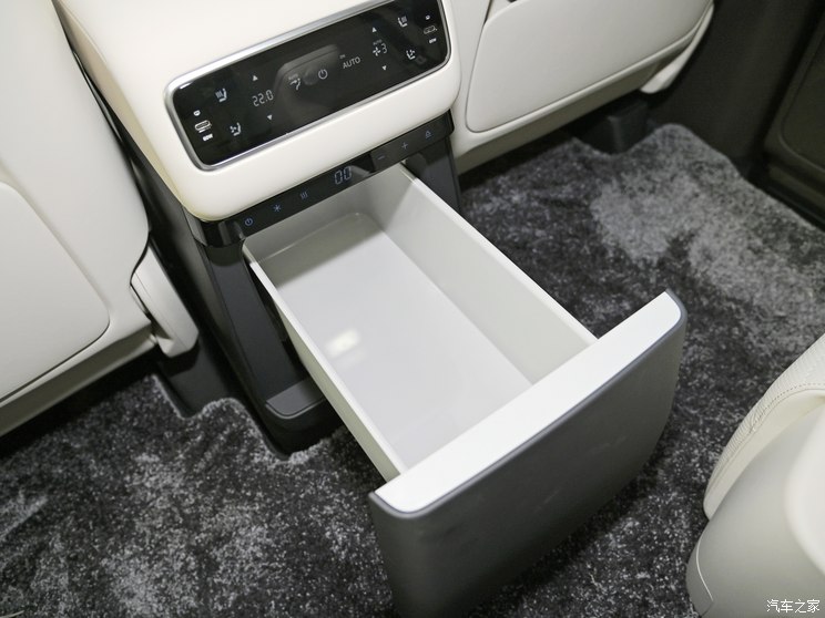 第二排是理想MEGA的精髓所在。它配备了3K分辨率的17寸OLED屏幕,而且官方称它是首款同时提供杜比视界和杜比全景声体验的车型,此外相比于L系列它的投屏音效获得提升。在这里,后排副驾侧小桌板和车载冰箱肯定不会缺席,其中冰箱采用压缩机制冷/制热,温度分别为0-7℃/35-50℃,容积8.8L。位于冰箱上的后排空调控制采用了触屏,取代了先前车型的物理按键。