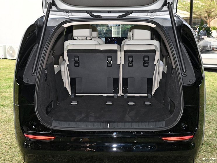 第三排座椅可以电动一键放倒、一键向前折叠,折叠后的进深达到1066mm,而它的标准进深可以达到680mm。实测中,当7人满载时最大可以装下4个28寸行李箱和2个20寸行李箱。此外在地板下,该车还拥有42L的储存空间。