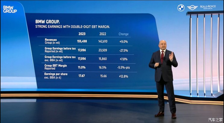 2023年,宝马集团息税前利润(EBIT)攀升至184.82亿欧元(2022年:139.99亿欧元/+32.0%)。1月至12月的EBT利润率为11.0%(2022年:16.5%;第四季度:8.6%;2022年:8.2%),高于10%的战略目标。