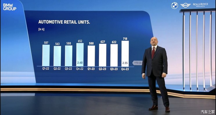 2023年,宝马集团在高端市场共交付2554183辆新车,同比增长6.4%(2022年:2399632辆/+6.4%),其中第四季度交付717620辆(2022年第四季度:651794辆/+10.1%)。全年交付量稳步增长,市场占有率为3.3%。纵观2023年,宝马和MINI(全景看车)纯电动车是实现业务增长的主要驱动力。在中国市场,宝马共售出824932辆宝马和MINI汽车,同比增长4.2%。