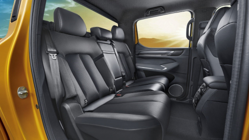 山海炮Hi4-T创新双后围设计,配合迷宫式出气口、隐藏式后门缝、车箱与车身间的全密封设计以及尾翼导流等技术,NVH表现遥遥领先,打造深海级静谧空间;车型首创后排座椅电动调节,最大乘坐靠背角达33度,相对传统皮卡25度靠背角度,舒适度大幅提升,配合1.6m超宽肘部空间,后排舒适度可比肩豪华越野车,真正实现舒适度平权。