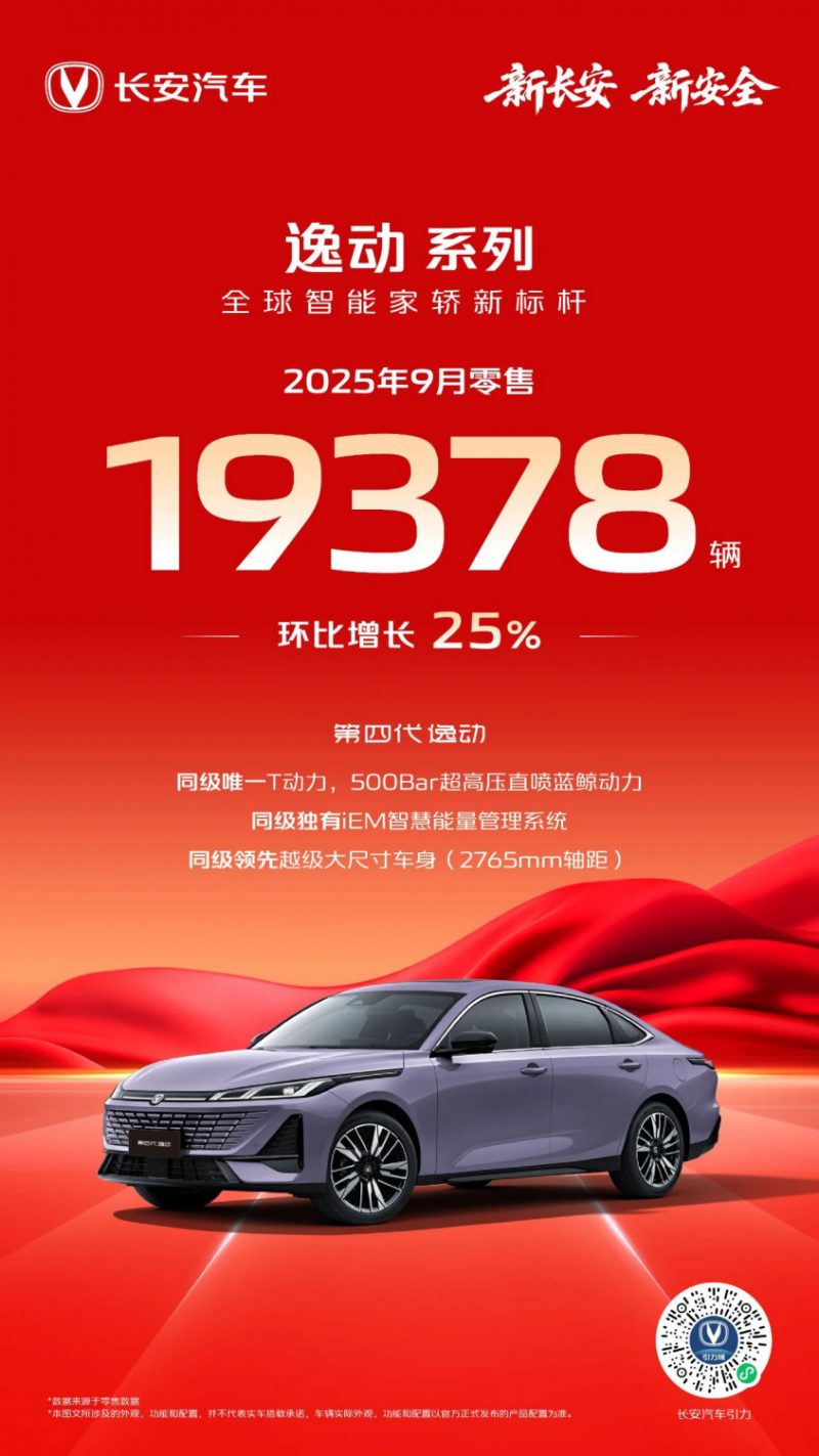 逸动系列:9月零售19378辆,全球智能家轿新标杆继续领跑市场