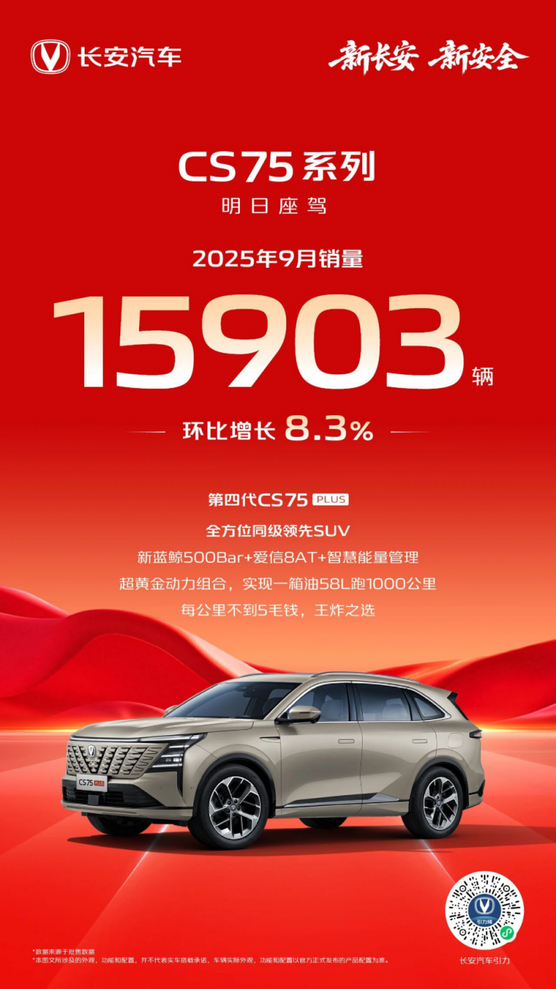 CS75系列:月销15903辆,“明日座驾”9月继续领跑市场