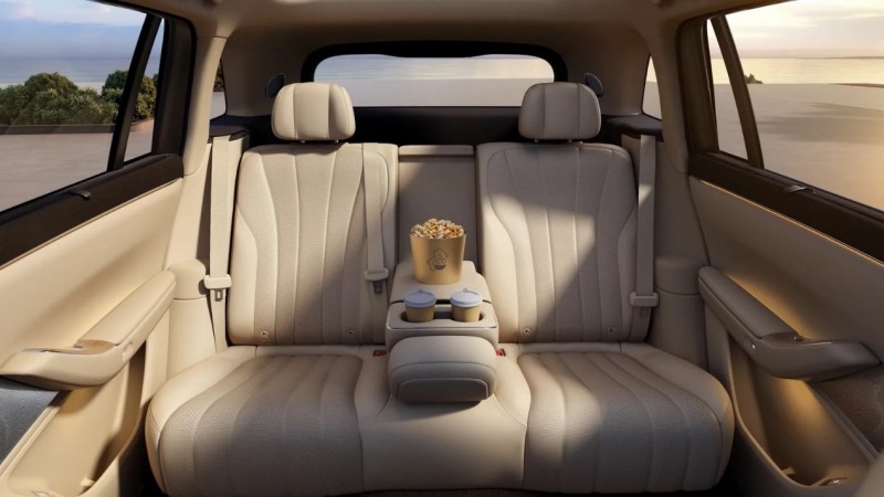 其次,在多乘员出行时,这套“屏幕矩阵”也展现出更多实用性——副驾10.25英寸专属屏和第二排17.3英寸娱乐屏拥有“下车卫士”功能,在乘客下车前自动显示车门外侧盲区,避免“开门杀”。