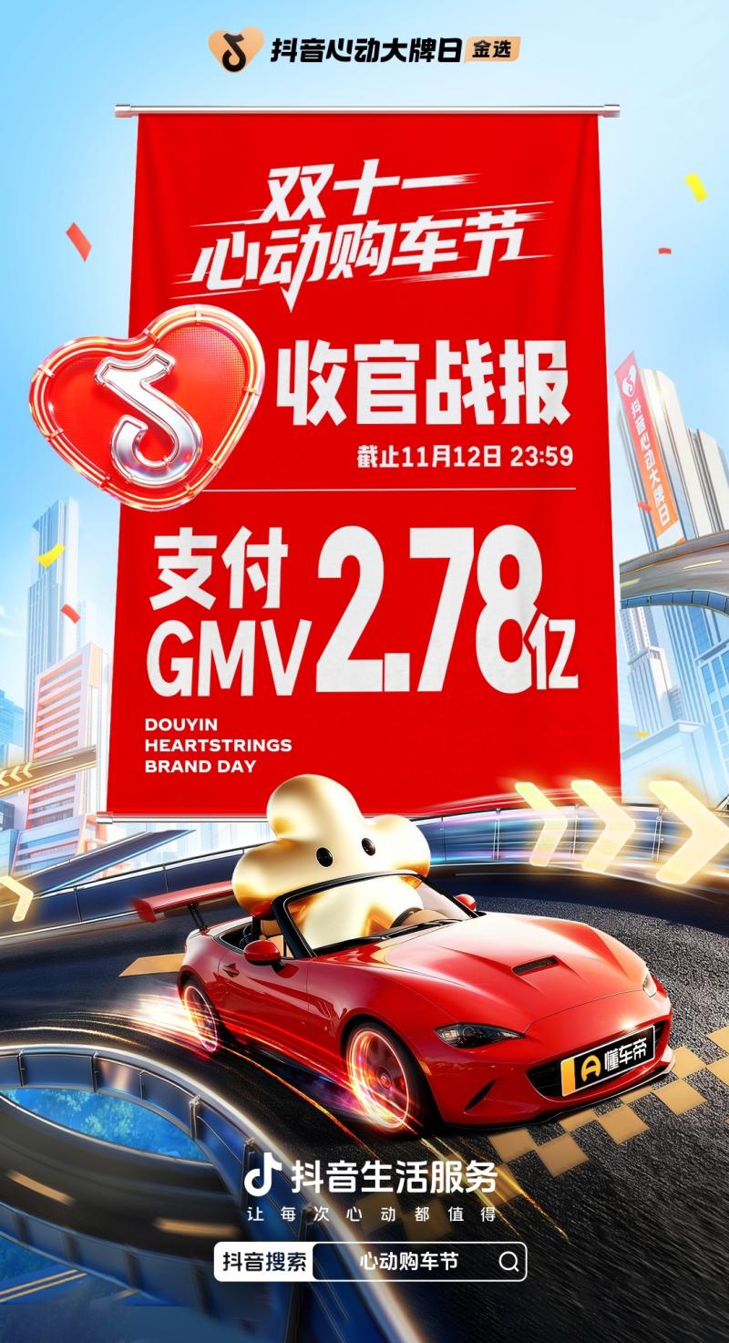 “可以上抖音买车了!”当“躺在沙发上刷抖音就订了台车”从段子变成现实,汽车行业的营销逻辑正在被重新书写。刚刚落幕的「抖音心动大牌日」×双十一心动购车节,以2.78亿元支付销售额的成绩,完成了一场关于“汽车能否在兴趣平台完成交易闭环”的完美论证。
