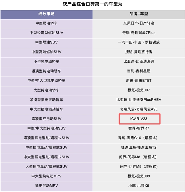 权威报告揭示价值新标准,iCAR V23荣膺细分市场口碑第一