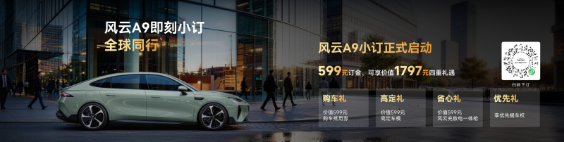 为回馈用户期待,风云A9特别推出车展专属小订礼遇。即日起,用户支付599元订金,可享价值1797元四重礼遇: