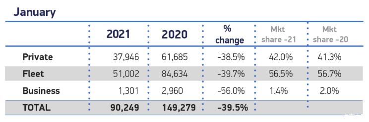 SMMT的数据显示,上个月英国汽车销量大跌近40%,仅有90249辆,而2020年1月的注册量近15万辆。英格兰和苏格兰都在1月5日开始实施了更严格的封锁措施,限制人们的流动,许多企业因此暂停运营,以此来阻止新冠病毒的传播。