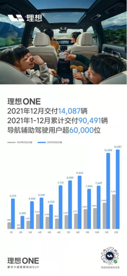 陪伴,世界上最重要的事,绝大多数父母的最大难题是没有时间。然而这种现状却因一辆“奶爸车”的走红获得改观。2022年1月1日,理想汽车公布了2021年12月及全年交付量。其中2021年12月,理想ONE交付量为14,087辆,同比2020年12月增长130.0%。2021年全年,理想ONE总体交付量 90,491辆,同比2020年增长177.4%。毫无疑问,理想汽车在过去的一年实现了爆发式的业绩增长。理想汽车能够取得如此优秀的成绩,这与其自身的产品优势和国内汽车市场环境有着密不可分的关系。