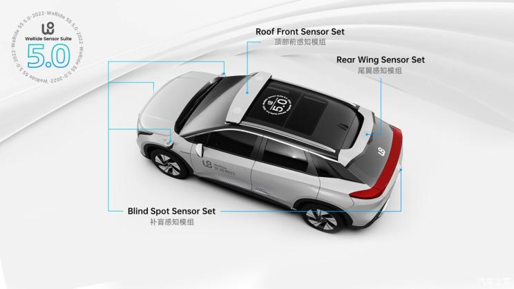 WeRide SS 5.0贯彻文远知行“知行相融WeFusion”的设计理念,在外观设计上,通过集成化、模块化和分体式三大手段,以一流的软硬件技术实现强大的智能驾驶。拥有12个摄像头、7颗固态激光雷达,共同构成6大感知模组,布局在车身不同位置。WeRide SS 5.0共采用了7颗车规级固态激光雷达,分布式设于车顶、尾翼和车身四周,大幅缩小了套件的尺寸,并带来更高的可靠性。其中,顶部前感知模组配有3颗固态激光雷达、5个中距离相机以及2个长距离相机,整体告别过往的“帽子”形态。尾翼感知模组配有1颗固态激光雷达及1个中距离相机,高度隐藏于车身,与顶部前感知模组相辅相成,负责后方的感知覆盖;加上车身四周多个由盲区激光雷达和鱼眼相机组成的补盲感知模组,完整地构成了WeRide SS 5.0知行相融的革新设计。