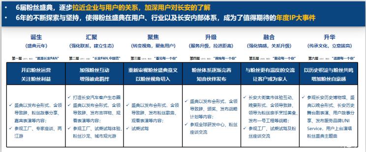 据官方介绍,自2017年开启第三次创业――创新创业计划以来,长安汽车加快构建科技实力,推动从服务客户向经营客户转型,以直达客户、直击痛点为基础,实现从被动服务到主动服务、从服务车到服务人、从合同纽带到情感纽带的三级进阶。2019年,长安汽车发布“知音伙伴计划”,倡导“客户触点全覆盖、客户诉求全管理、诉求管理全闭环”理念,不断优化互动管理流程,完善会员管理体系。