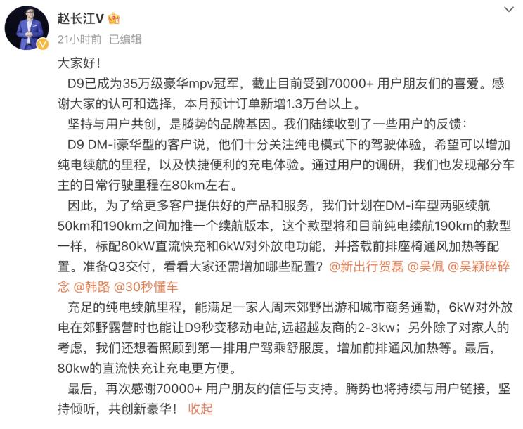 [本站 资讯] 5月22日,我们从启辰品牌官方了解到,旗下紧凑型SUV――启辰大V DD-i超混动车型将于今日开启预售。新车新车配备1.5T四缸发动机和电机组成的插混系统,综合油耗0.85L/100km。同时,该车将新增一款“不焦绿”的车色,从而提升个性化表现。