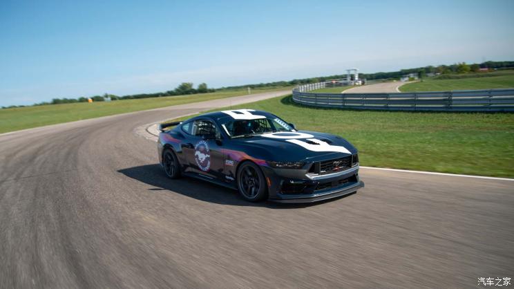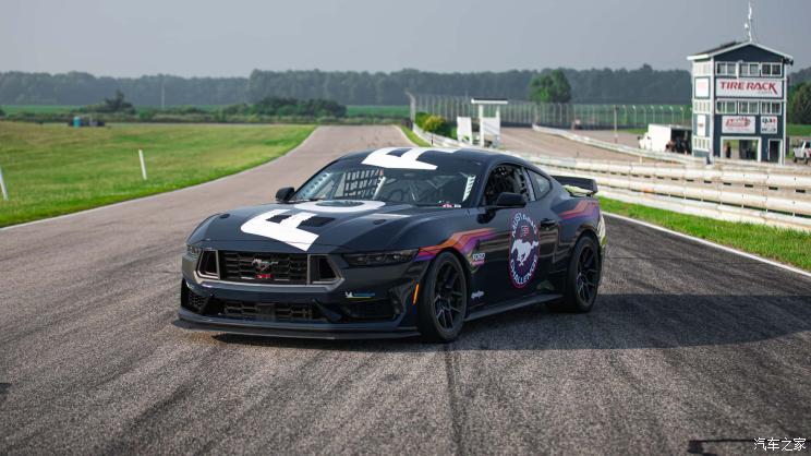 外观方面,整体造型依旧采用福特Mustang家族设计语言,硬朗平直的线条突出美式肌肉造型,相较普通版车型外观更加激进。前包围部分增加了空气动力学套件为车头保证足够的下压力,前中网位置设计开孔装配了赛用化的拖车装置。此外,整体车身都采用了赛道版专属拉花,独具辨识度。