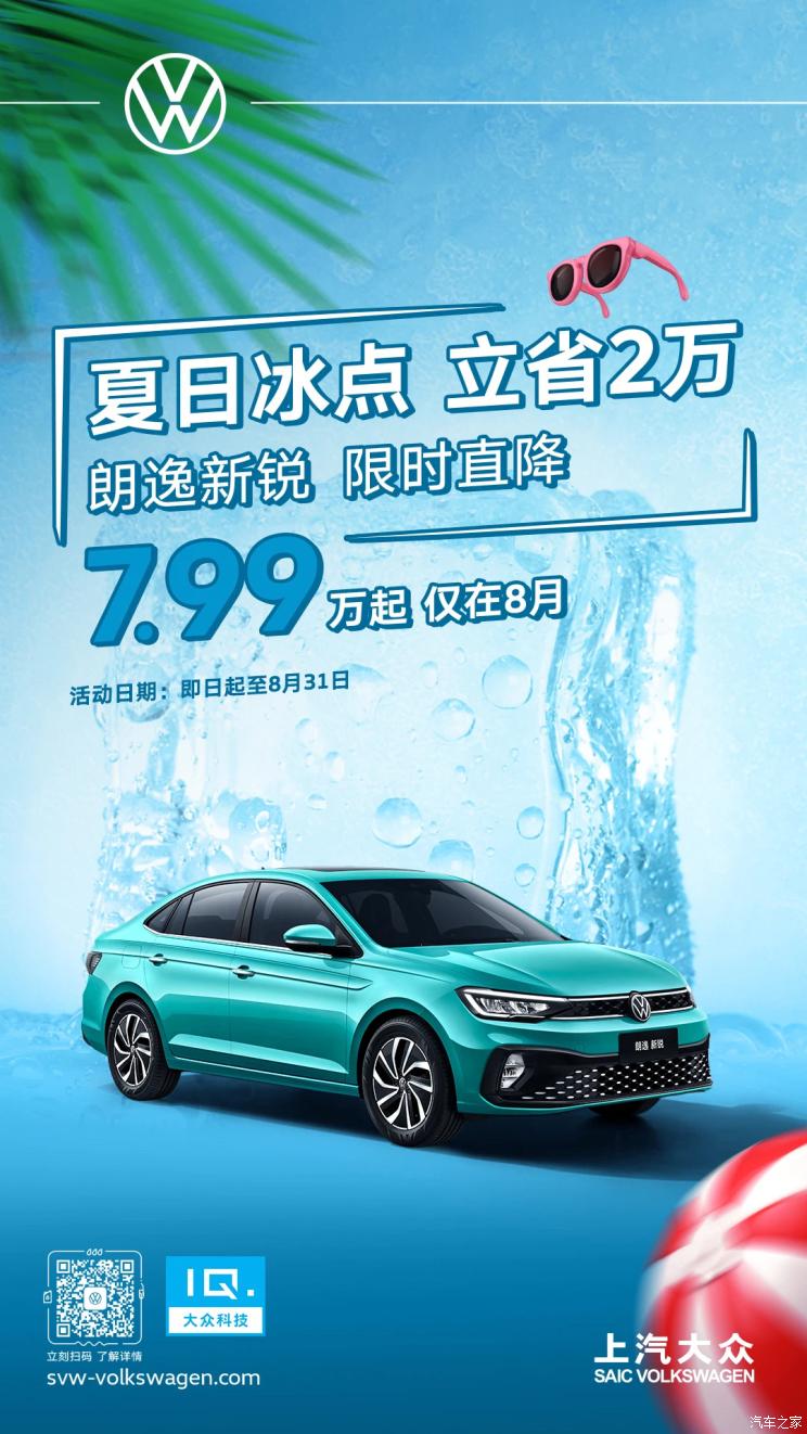 [本站 资讯]日前,上汽大众官方再次发布降价信息,新晋推出的大众朗逸新锐限时直降,至高立省2万元,优惠后起售价7.99万元,活动截止日期为8月31日。