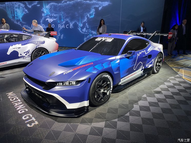 外观方面,整体造型依旧采用福特Mustang家族设计语言,硬朗平直的线条突出美式肌肉造型,相较普通版车型外观更加激进。前包围部分增加了空气动力学套件为车头保证足够的下压力,前中网位置设计开孔装配了赛用化的拖车装置。此外,整体车身都采用了赛道版专属拉花,独具辨识度。