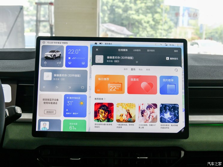 新车配备15.4英寸2.5K悬浮式中控屏,其搭载车规级7nm座舱芯片龙鹰一号,带来更出色的体验,车机界面分布合理,拥有丰富的娱乐功能,包括K歌、看电影等,并拥有全场景所见即所说语音控制,新车还配备了多个扬声器,中控屏下方设计了无线充电区域。