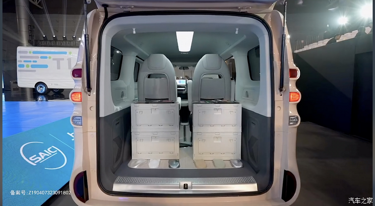 在车内,展车是一款四座版本。中控部分设计也很温馨,采用了液晶仪表和中控屏幕。副驾驶前方拥有一块1.6平方米的区域可以是吸纳办公桌和餐桌的切换。同时,该车在车内用料、饰板等方面采用了更多的软质材料,并加入了氛围灯来提升档次感。