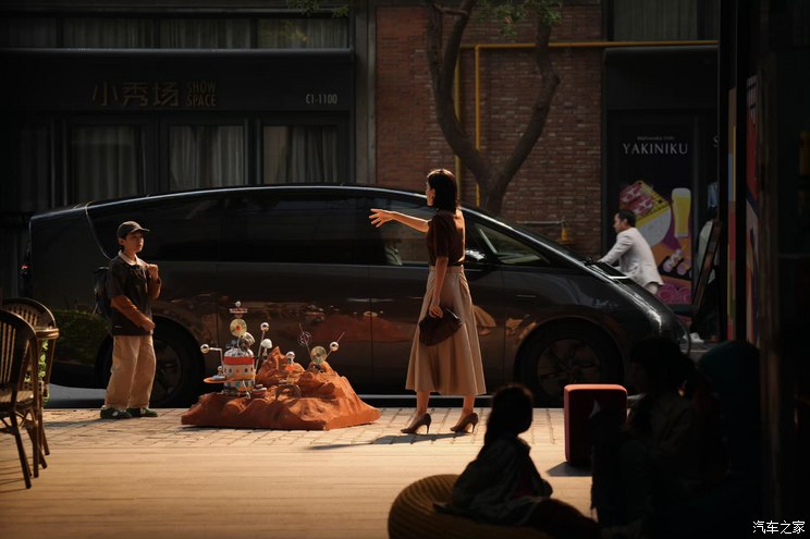 来到侧面,车身十分光洁,看不到传统车型上的腰线,同时该车前排和二排侧滑门的把手均采用隐藏式的设计,此举也是尽量降低风阻。它配备的是245/60 R18的米其林e.PRIMACY电动车专属轮胎,并搭配低风阻轮圈。此外从车顶线条来看,它还配备了大尺寸的天窗。