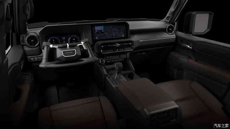 车身侧面来看,极石01拥有趋于平直的车顶线条,从而获得更好的车内头部空间,前后侧翼子板微微突出车身,肌肉感十足。尾部方面,该车采用竖状型尾灯组,并配备外挂式备胎,增加SUV越野属性。车身尺寸方面,新车长宽高分别为5050(5295)/1980/1869mm,轴距为3010mm。