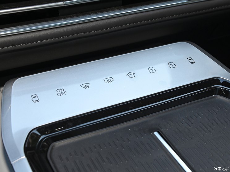 内饰方面,新车内饰设计相对简洁,尽可能取消了物理按键,车内使用流行的悬浮式三联屏+8155芯片组合,仪表、中控、副驾三屏均为12.3英寸液晶屏,其配备的斑马智能车机系统可集车控、导航、娱乐、通讯、App应用等功能于一体,支持全场景语音控制,包含4音区及连续语音指令控制,同时还拥有全景影像和透明底盘。快捷按键设置在了中控台下方,并提供手机无线充电区域,整个中控台包括贯穿式的空调出风口。