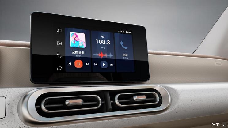 新款宏光MINIEV马卡龙将SMILEY美学继续运用在内饰设计上,以悦心为设计主旨的两款内饰配色和之前公布的5款SMILEY乐趣双拼车色相映成趣,同时在空间表现、座椅材质、座舱配置等多个方面也进行了全面升级。具体来看,该车采用经典的双辐式多功能方向盘(集成音频控制、电话接听和切换歌曲在内的多种功能按键),搭配全新造型的大尺寸液晶仪表以及8英寸悬浮式中控屏,提升视觉精致感。同时,圆角矩形空调出风口搭配下方圆形机械式控制键,年轻感十足。
