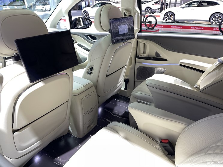 新车提供专属福祉座椅的加装,改装保留了原车OEKO-TEX二排头等舱宽适座椅,原车座椅按摩加热通风功能也会保留。改装后座椅具备升降旋转功能,可旋转角度110度,下降高度410mm,座椅承重150kg。