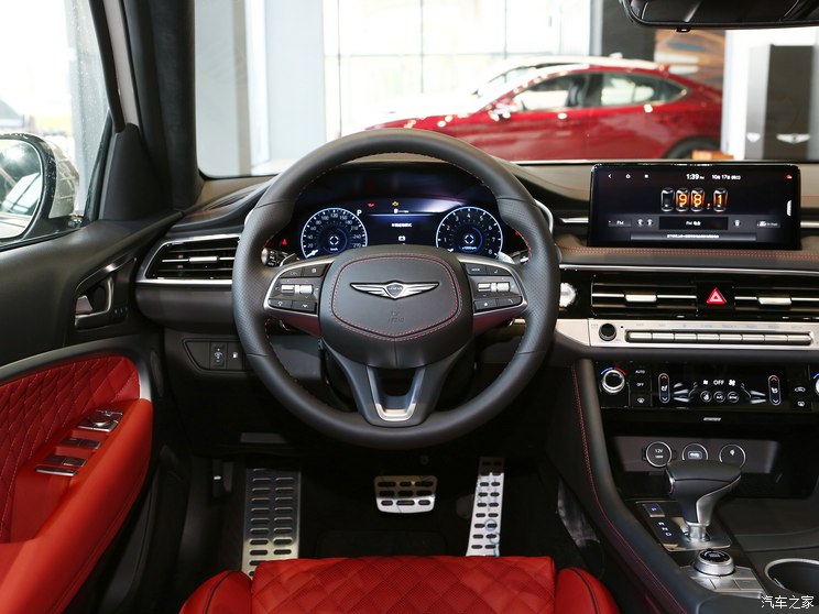 内饰方面,新车采用红黑配色,红色的缝线引人注目。新车配备12.3英寸3D仪表盘、8英寸彩色液晶仪表盘、10.25英寸悬浮式高清信息娱乐系统、抬头显示、无线手机充电等功能,车内音响系统采用9扬声器与Lexicon豪华音响系统(15扬声器)可选配置。