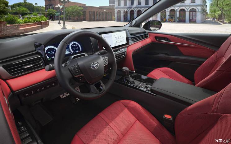 据了解,全新凯美瑞将会标配7.0英寸液晶仪表以及8.0英寸中控大屏,XLE/XSE版车型的中控屏尺寸将会提升至12.3英寸,内置无线CarPlay以及Android Auto互联。此外,新车还将配备无线充电面板,顶配车型集成10.0英寸抬头显示功能以及九扬声器JBL音响。根据配置不同,内饰材质也将有所区别,比如,XSE车型配备的便是红+黑色皮革。我们还了解到,XLE和XSE车型将可选座椅加热/通风功能。安全配置方面,全新凯美瑞将标配Toyota Safety Sense 3.0智行安全套装。
