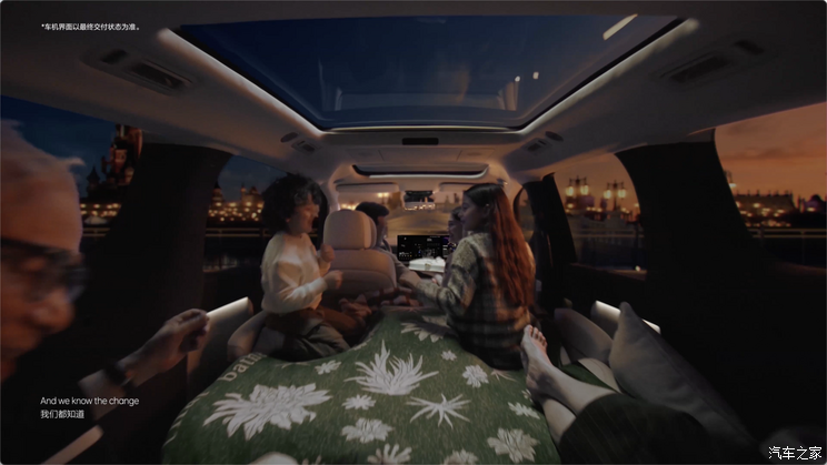 在一家人车内K歌的镜头中,展示了第一排、第二排座椅的大床模式。而另一帧则变成第二排、第三排座椅的大床模式。说明MEGA在座椅的灵活性方面会提供很多组合,具体有多少玩法可以等待官方进一步解密。来到影片的末尾,一家三代人在车内庆生,并拍下了一张自拍照,这是在展示该车拥有的自拍功能。