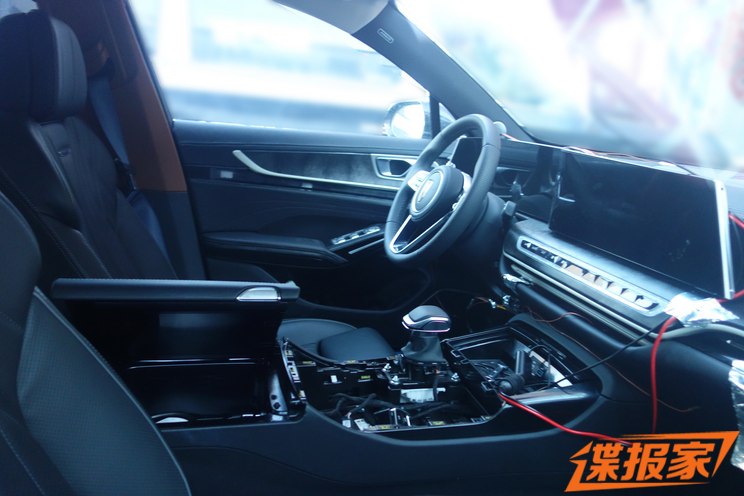 根据此前曝光的内饰,新车内饰配备了曲面双联屏幕,同时还配备了AR HUD抬头显示系统,拥有骁龙8155芯片,算是红旗的一次大胆尝试。方向盘也相当个性,看上去更像是一个游戏手柄。屏幕下方是大尺寸的空调出风口。