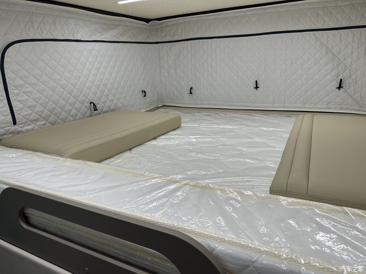 后部软升顶房车则采用简洁明快的线条和块面设计元素,实现了与基础车的高度融合。全新一体式背箱(选装)采用一分为三的设计,提升了储物空间的使用效率,并且合理地分布了各种物品,使整个车辆的储物功能更加实用。为了方便乘客上下车,该车配置了原厂侧踏板。车身外侧还标配了180°的户外遮阳棚(可选装270°),它能够直接覆盖整个房车的右侧和尾部,为户外活动提供更好的便利。