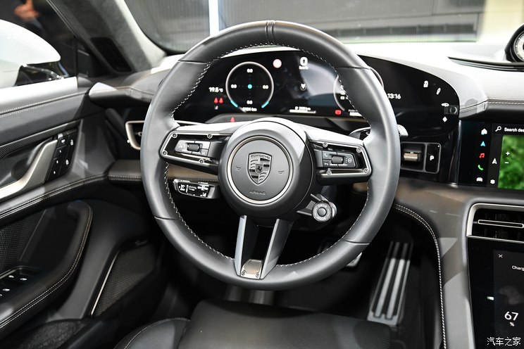 内饰部分,中控台T字区造型更加“Taycan”化,三联屏设计突出了科技感与豪华感。不过我们看到Macan 4车型上并没有选装副驾驶屏幕,未来这很有可能是个选装配置。整体造型依旧是以驾驶者为中心,挡把被移到了方向盘右侧,一键启动按键基于保时捷传统依旧在方向盘左侧。车辆是配备了Android Automotive OS车载操作系统的PCM,以及可下载第三方应用程序的保时捷应用中心(未来保时捷会针对国内版本车型做本土化App下载选择)。支持CarPlay及Android系统手机映射。My Porsche应用程序可远程控制充电和车载功能。
