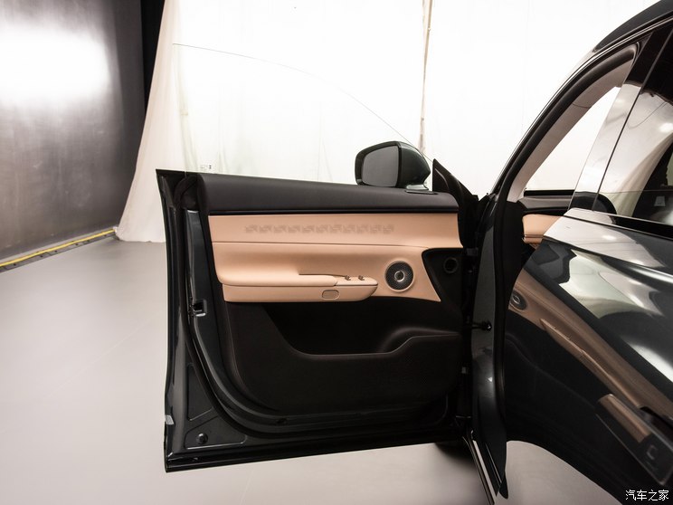 车身侧面,车侧饱满圆润,配合动感的腰线,无框车门、隐藏式门把手等均是时下新能源车型常见的配置,配合大轮圈营造出大气场。车身尺寸方面,新车长宽高分别为4955/1975/1698mm,轴距为3000mm。