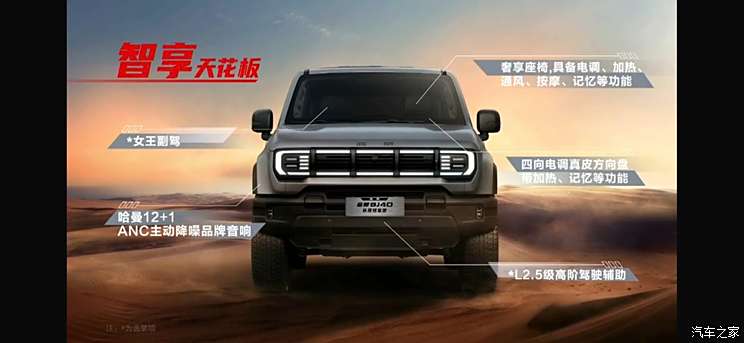车内方面,新车依旧保留女王副驾,同时座椅具备电调、加热通风、按摩、记忆等功能,方向盘支持四向电调、加热、记忆等功能。此外,新车还将配备内嵌式金属防滚架+笼式车身、哈曼12+1 ANC主动降噪品牌音响以及L2.5级高阶驾驶辅助功能。