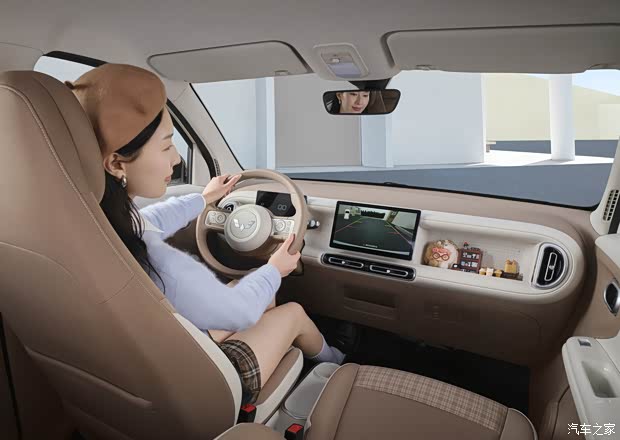 车内采用怀挡搭配多功能方向盘。10.1英寸高清中控大屏使用全新萌趣UI设计,集成空调调节、四种场景模式、预约充电等多种实用功能,下滑即可打开控制中心使用高频功能,未来通过OTA可实现CarPlay、HiCar、CarLink三种手机互联方式。此外更是支持手机APP远程控制、无感进入/启动、智能上下电等功能。全车座舱拥有20处实用储物空间,后备厢最大可拓展至838L。