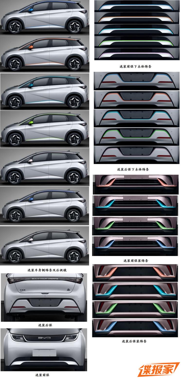 在外观方面,新车采用了“海洋美学”的全新设计理念,整体车身造型十分圆润,让该车看上去非常可爱。新车前脸配备了封闭式格栅,并加入了较多的U型元素进行点缀,搭配全新比亚迪LOGO,辨识度较高。车尾的造型与车头相呼应,贯穿式的尾灯符合当下流行趋势。在车身尺寸方面,新车长宽高分别为4070(4125)/1770/1570mm,轴距为2700mm。